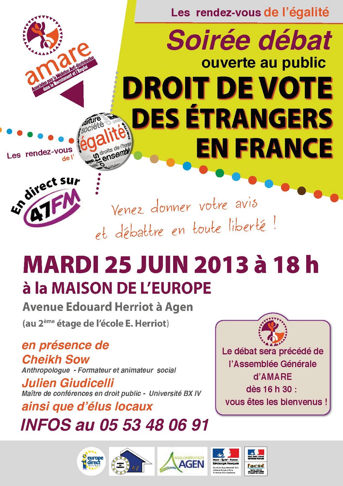 RDV de l'égalité! Mardi 25 juin: Soirée-débat: droit de vote des étrangers